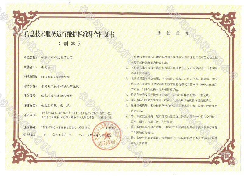 ????? ? ? 長沙翊琪科技有限公司近幾年來一直致力于改進(jìn)運(yùn)維服務(wù)手段,提高運(yùn)維服務(wù)水平,改善運(yùn)維服務(wù)質(zhì)量。2021年3月19日,長沙翊琪科技有限公司ITSS運(yùn)維服務(wù)能力...