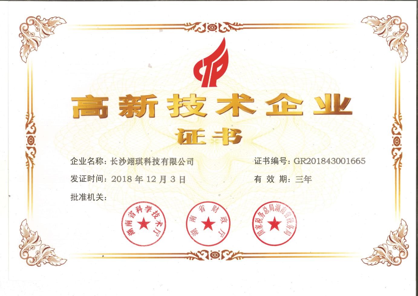 熱烈祝賀長沙翊琪科技有限公司榮獲 “高新技術(shù)企業(yè)”認(rèn)證